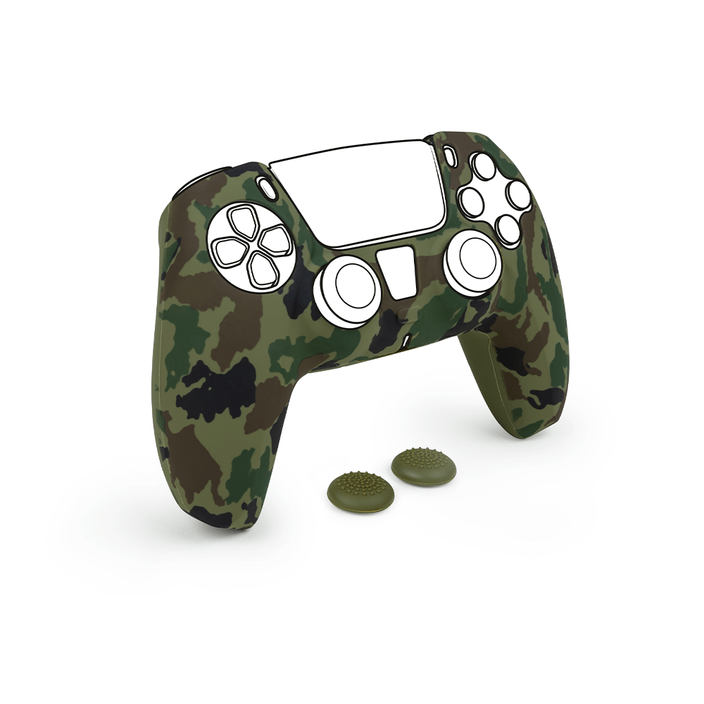 INCREASED COMFORT AND GRIP WHEN PLAYING. SILICONE SKIN THAT PROTECTS THE CONTROLS-GREEN CAMOUFLAGE
